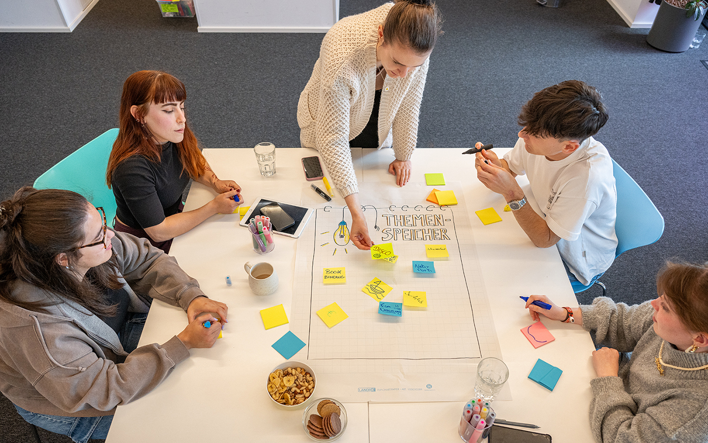 Um ein Projekt zu starten, bieten wir Workshops für Gruppen und Einzelpersonen an. Wenn du an deiner Projektidee weiterarbeiten willst, kannst du an der Projekt Schmiede teilnehmen.